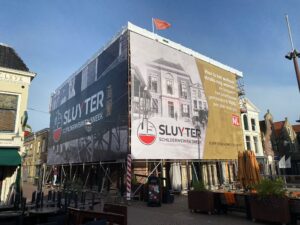 Opvallende steigerdoeken met pakkende reclame. Een echte aandachtstrekker die de open zijde van uw bouwsteiger bekleedt. Het zicht naar buiten blijft behouden. De steigerdoek vangt ook puin en bouwmateriaal op. Niet onbelangrijk voor de veiligheid van uw medewerkers.
