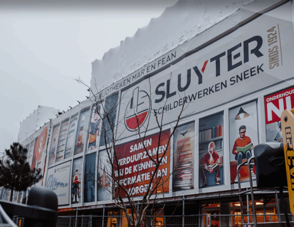 Opvallende steigerdoeken met pakkende reclame. Een echte aandachtstrekker die de open zijde van uw bouwsteiger bekleedt. Het zicht naar buiten blijft behouden. De steigerdoek vangt ook puin en bouwmateriaal op. Niet onbelangrijk voor de veiligheid van uw medewerkers.