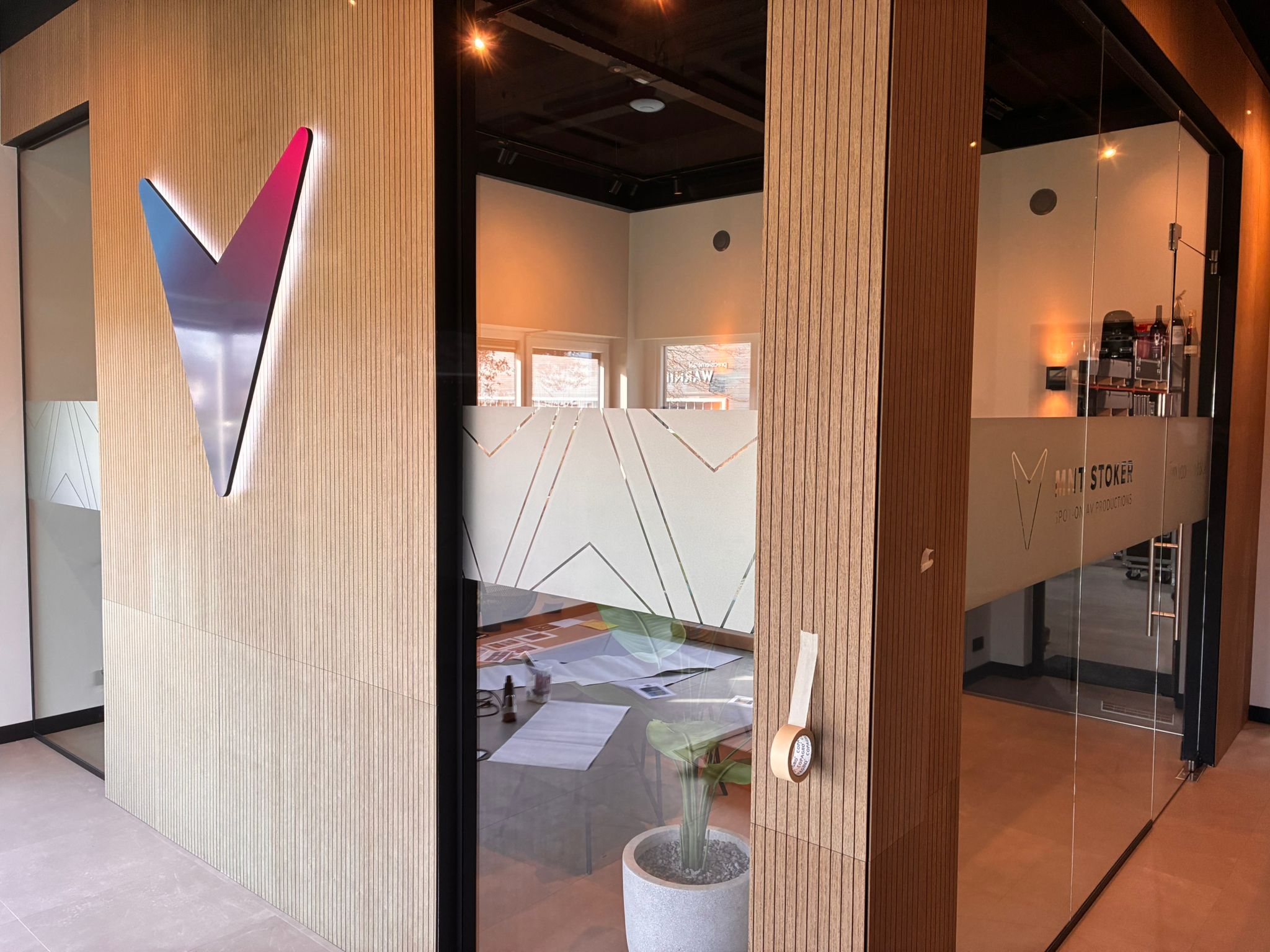 In de kantoorruimtes brachten we etsfolie aan: subtiele raambelettering die zorgt voor privacy zonder het open karakter van de ruimte te verliezen. Het resultaat is een rustige, professionele uitstraling die perfect aansluit bij de moderne inrichting.